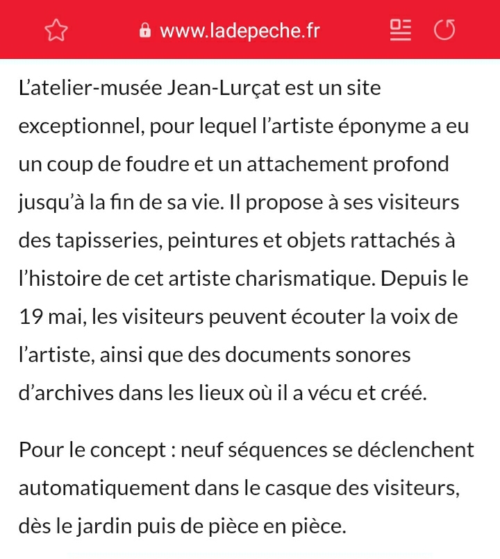 La Dépêche du Midi > « Musée : écouter Jean Lurçat au milieu de ses œuvres à Saint-Laurent-les-Tours », 17 juillet 2021