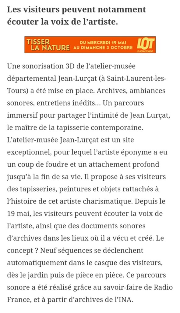 Medialot > « Parcours sonore à l’atelier-musée Jean-Lurçat : Une grande première ! », 15 juillet 2021